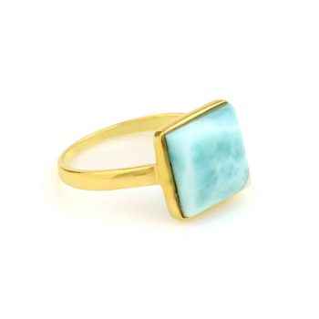 Product name:Natural Larimar Silver Gold Plated Statement Ring