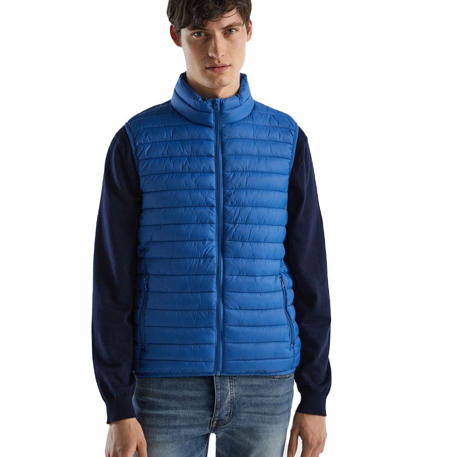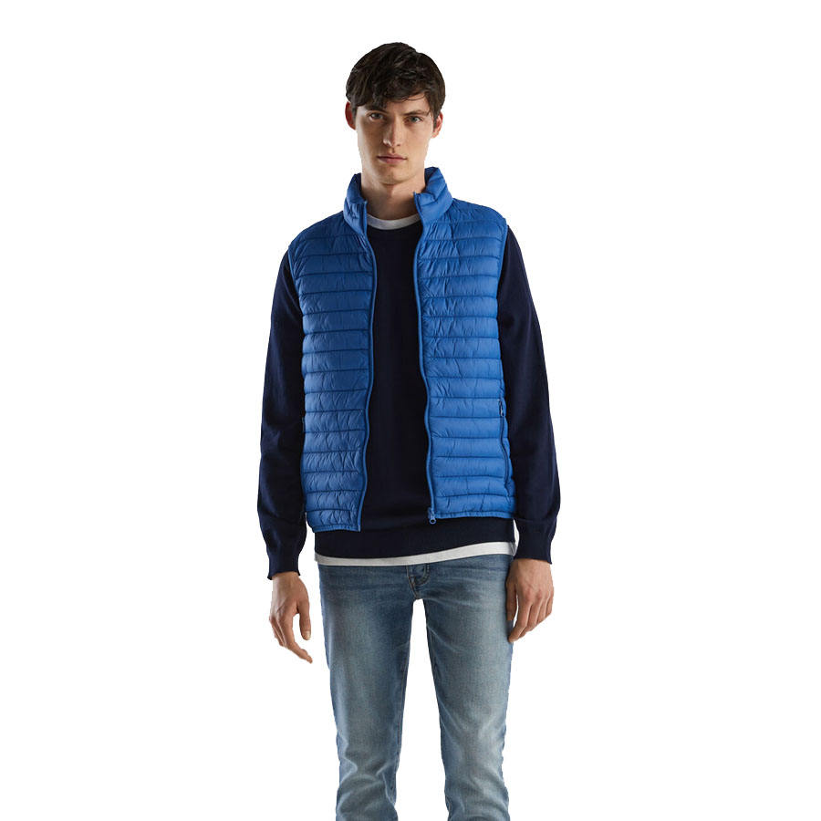 Top Selling 2023 Men's Blue Quilted Stand Collar Sleeveless Puffer Jacket Full Zip up Winter Jacket with Sale Pockets