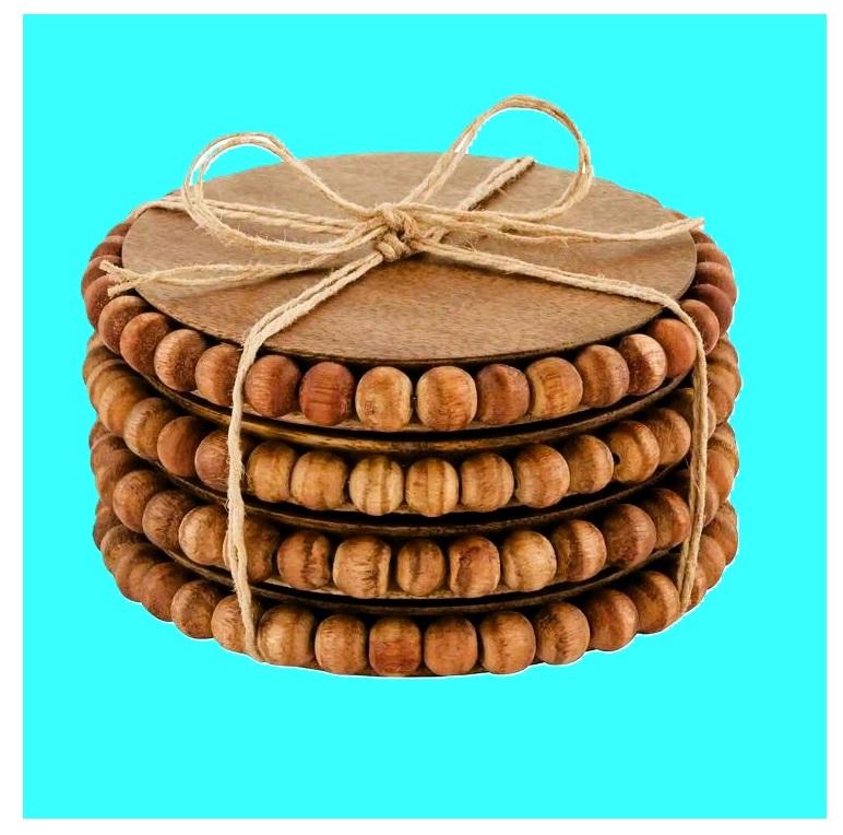 Top Selling 4 Piece Set Wooden Beaded Drink Coasters Tea Coffee Wine Coaster for Kitchen Accessories by Quality Handicrafts