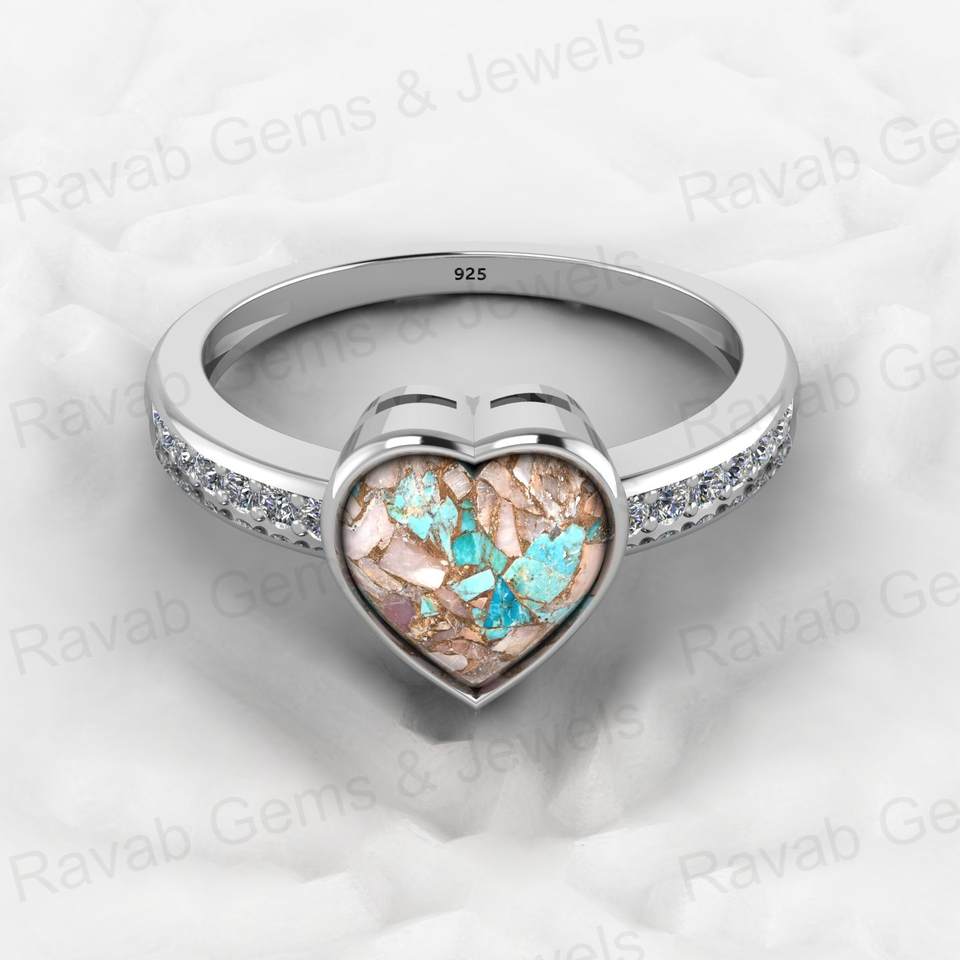 Product Name:Gemstone 925 Sterling Silver Pink & Blue Turquoise Rings