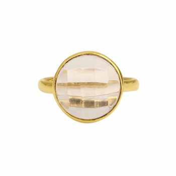 Natural Clear Crystal Quartz Silver Gold Plated Gemstone Bezel Ring