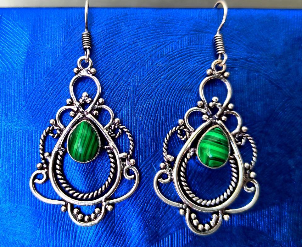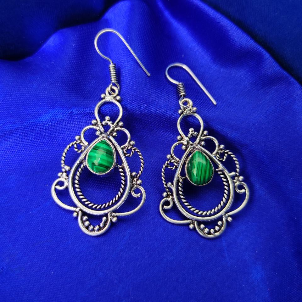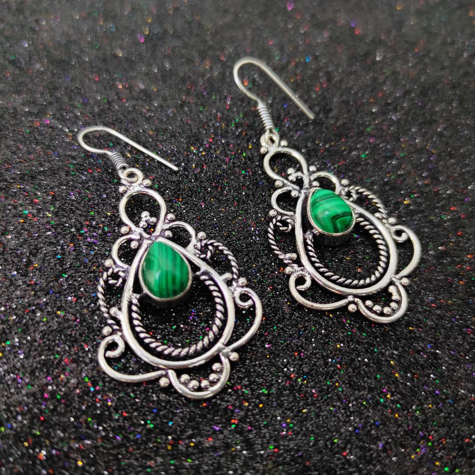 Top Selling 925 Sterling Silver Gold Plated Malachite Dangle Drop Earrings Women Diamond Gemstone Healing Fashion Party Gift