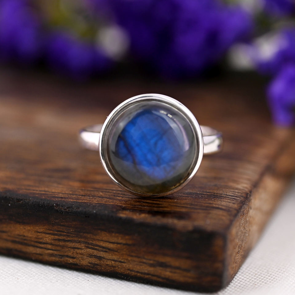 Product Name:Natural Labradorite Sterling Silver Gemstone Bezel Ring