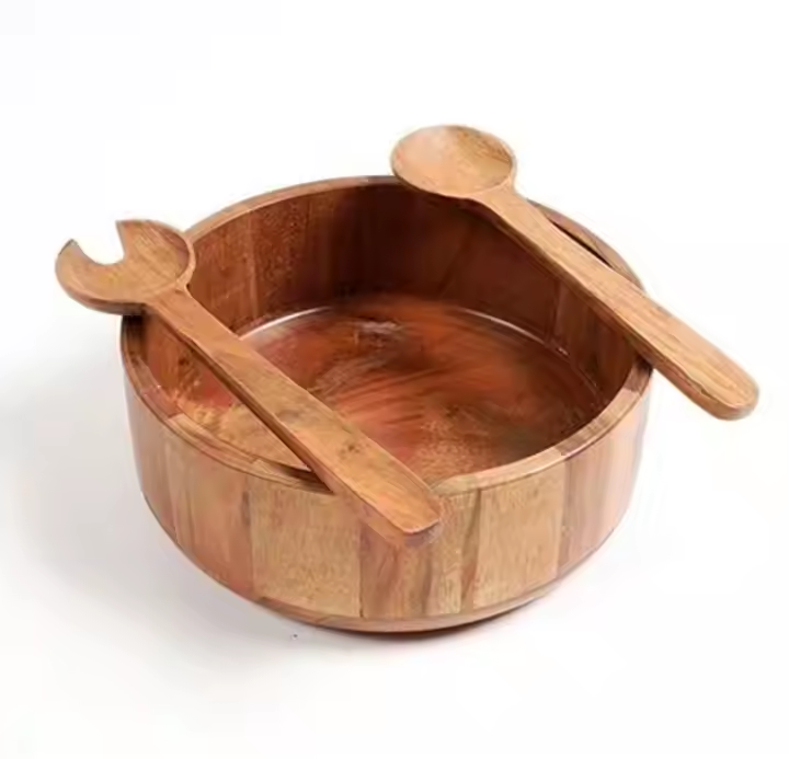 Top Selling Acacia Wood Salad Bowl Platter Customized Size Made in India with Enamel for Commercial by crescent crafts
