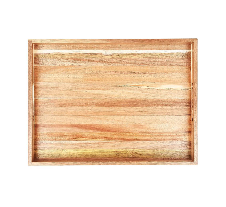 Premium Acacia Wood Serving Tray with Handles Set of 2 Cheap Wholesale Food Cake Tea Serving Tray for Hotel Restaurant Kitchen