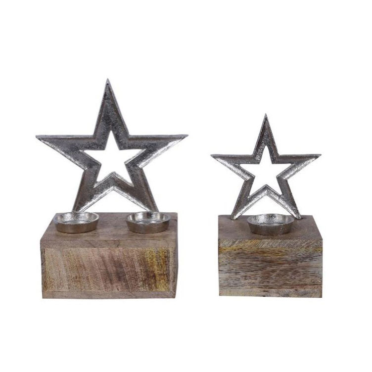 Top Selling Aluminum T-Light and Star Silver Finished on Wooden Box Home & Hotel Decorative Gifts Product for Sale at Low Price