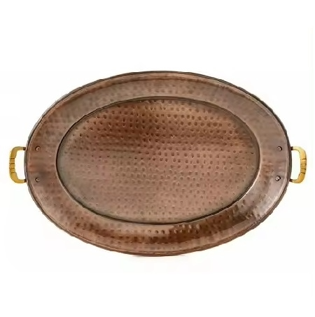Top Selling Antique Copper Hammer Design Metal Serving Tray Stylish Dishwasher Safe Dinnerware Polished Technique for Parties