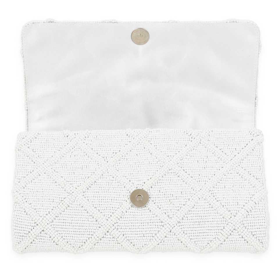 Top Selling Beaded Floral Pattern Basket Weave Clutch Handbag with Shoulder Strap and Custom Logo-Fashion Party Evening Use