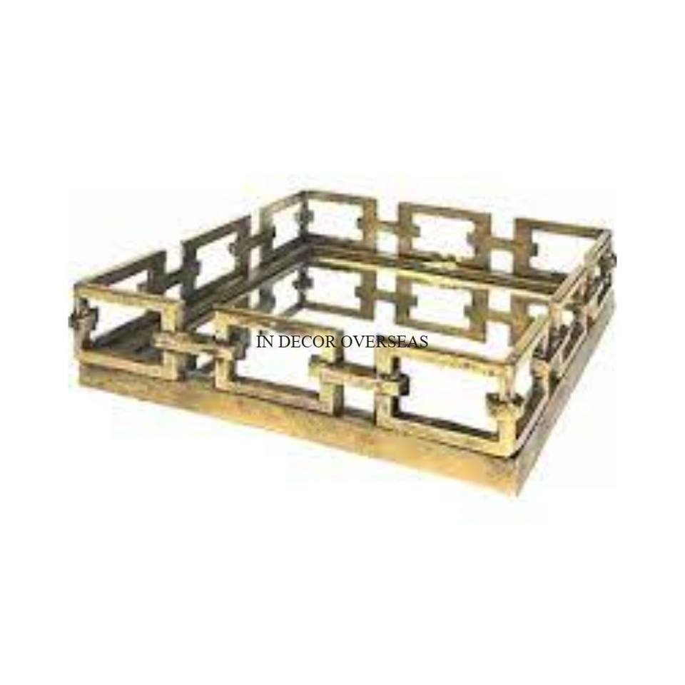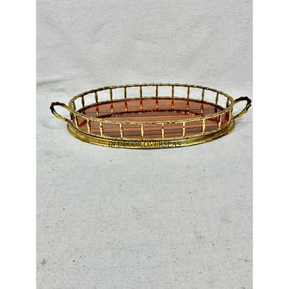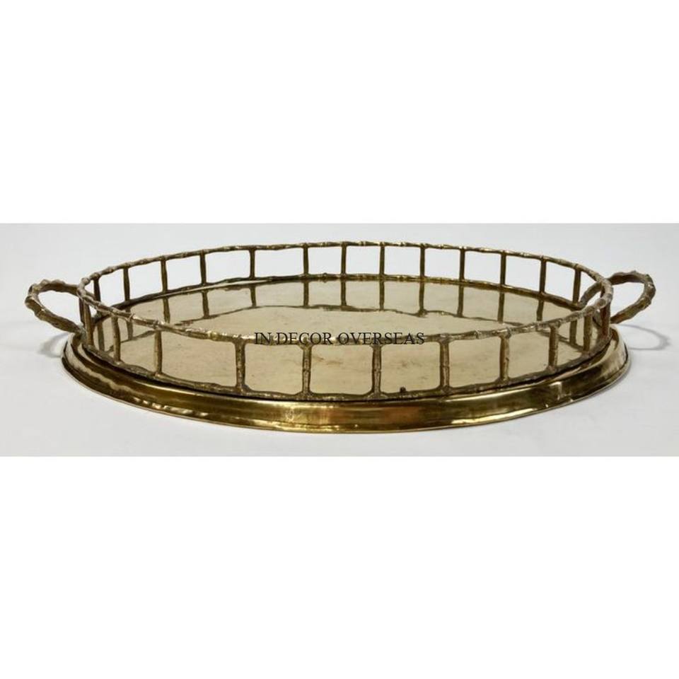 Top Selling Best Quality Clear Mirror Made Oval Shape Serving Tray With Gold Plated Metal Frame And Handle In Impressive Price