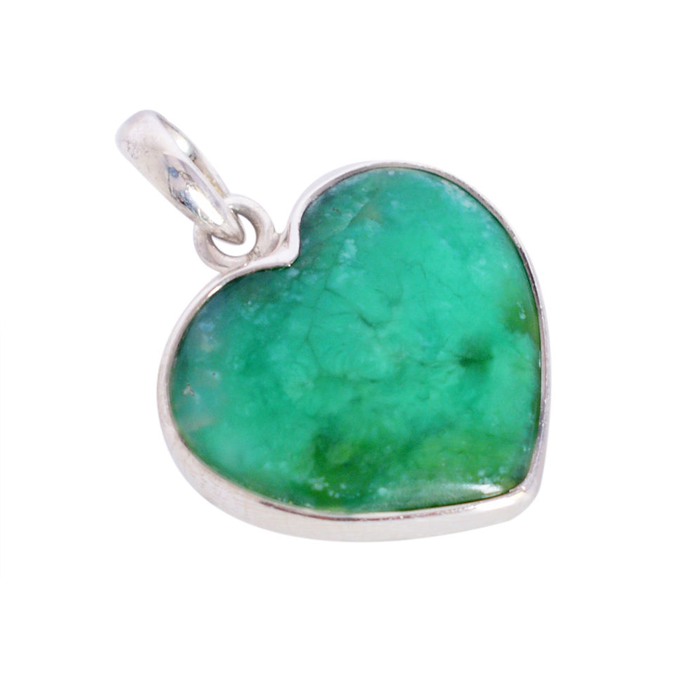 Best Quality 925 Sterling Silver Fine Jewelry Top Selling Gold Plated Chrysoprase Gemstone Heart Pendant for Gift