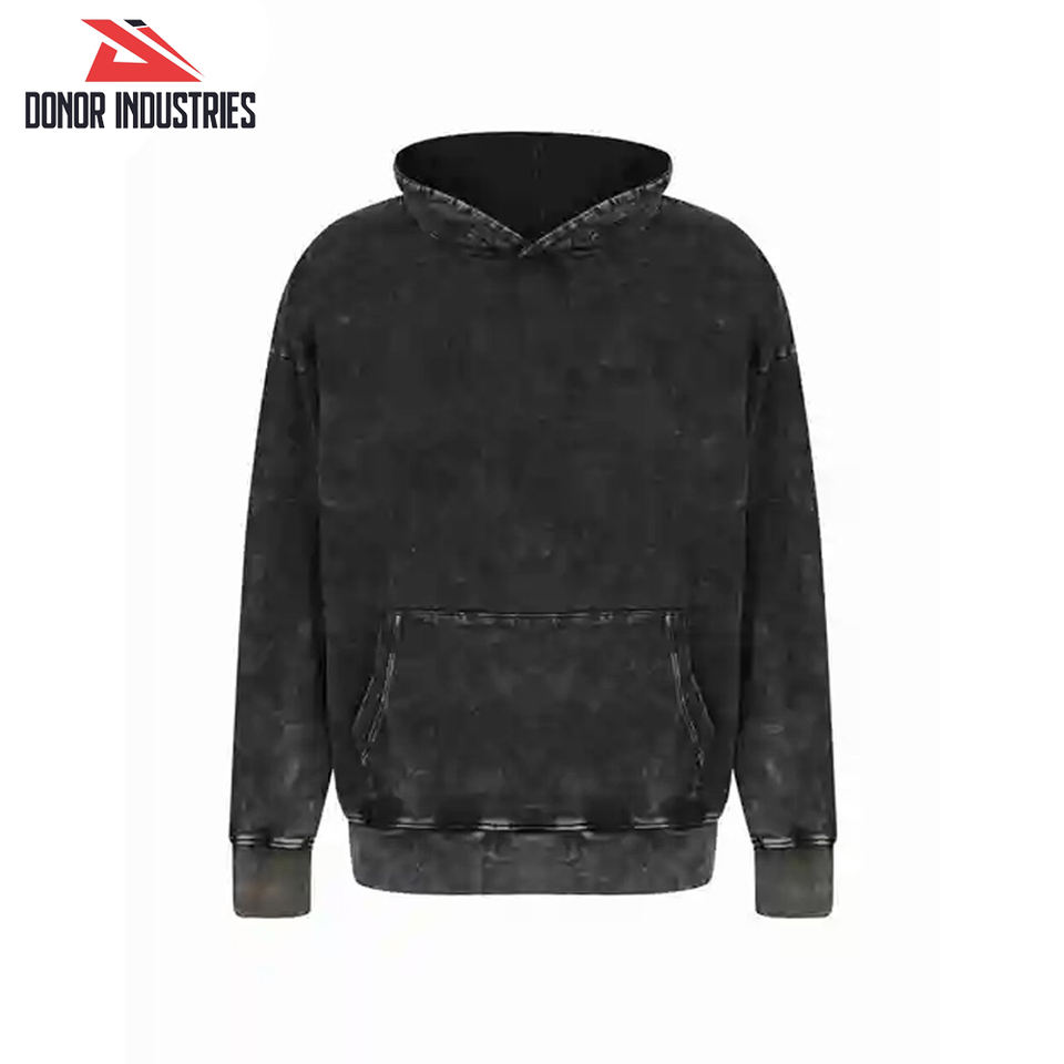 Top Selling Black Casual Hoodies New Arrivals High Quality Pullover Style Long Sleeve Acid Wash Hoodies