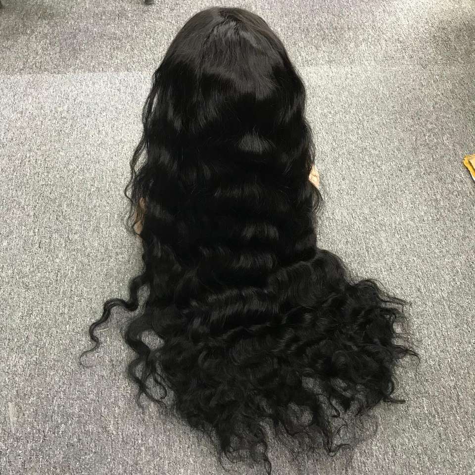 Top Selling Black Long Natural Wavy Human Hair Wig Virgin Raw Hair Lace Closure Unprocessed One Donor