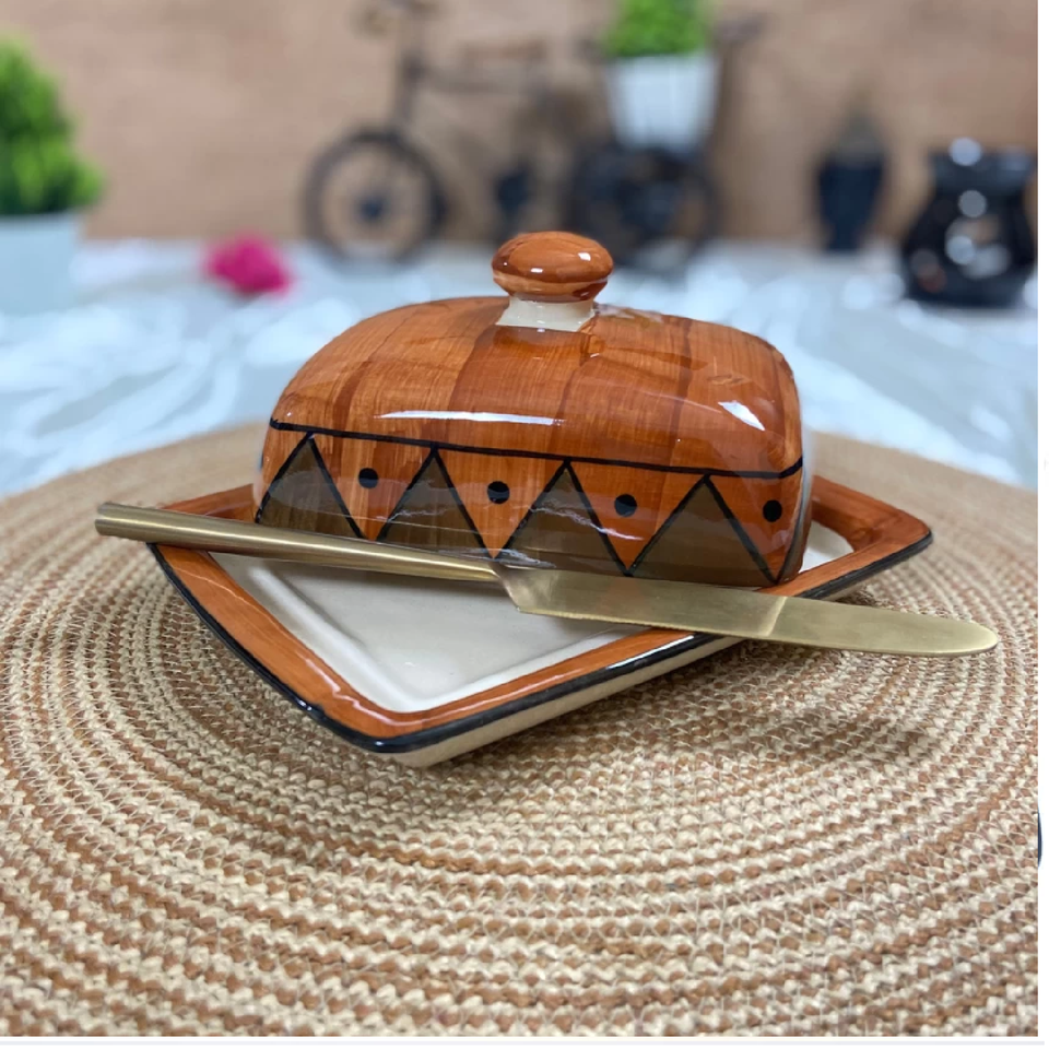 Top Selling Brown Handpainted Ceramic Butter Dish Silverware Handmade Restaurant Wedding Events Table Top Storage Holder Plate