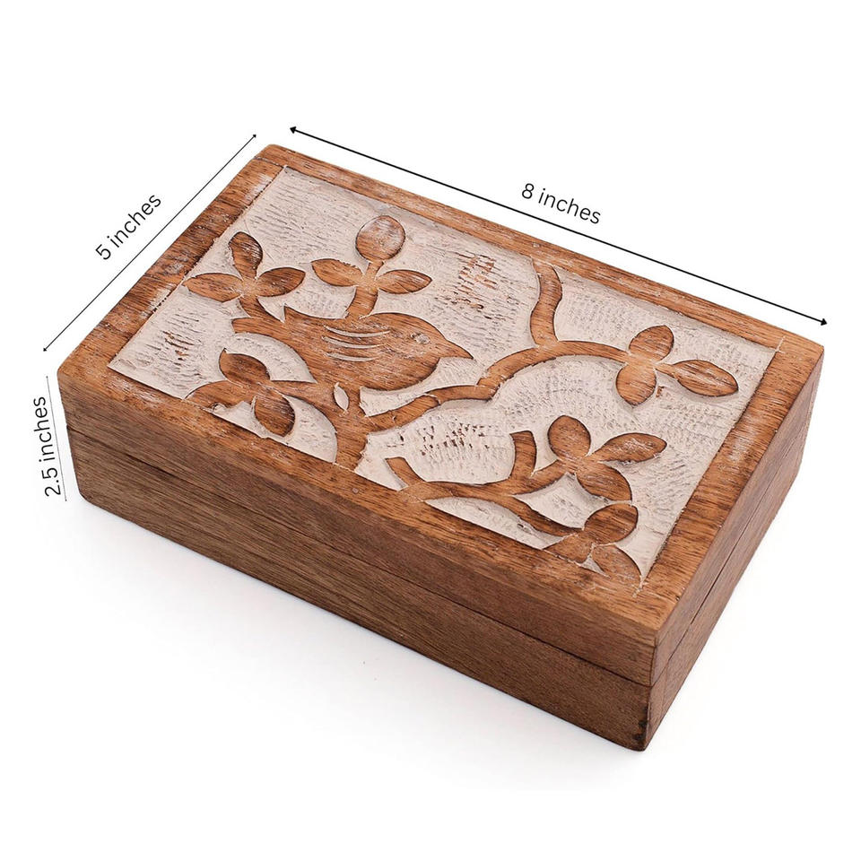 Custom Hand Carved Mango Wood Box with Bird Design Keepsake Organizer for Gifts Wholesale Supplier Unique Wooden Box Home Decor