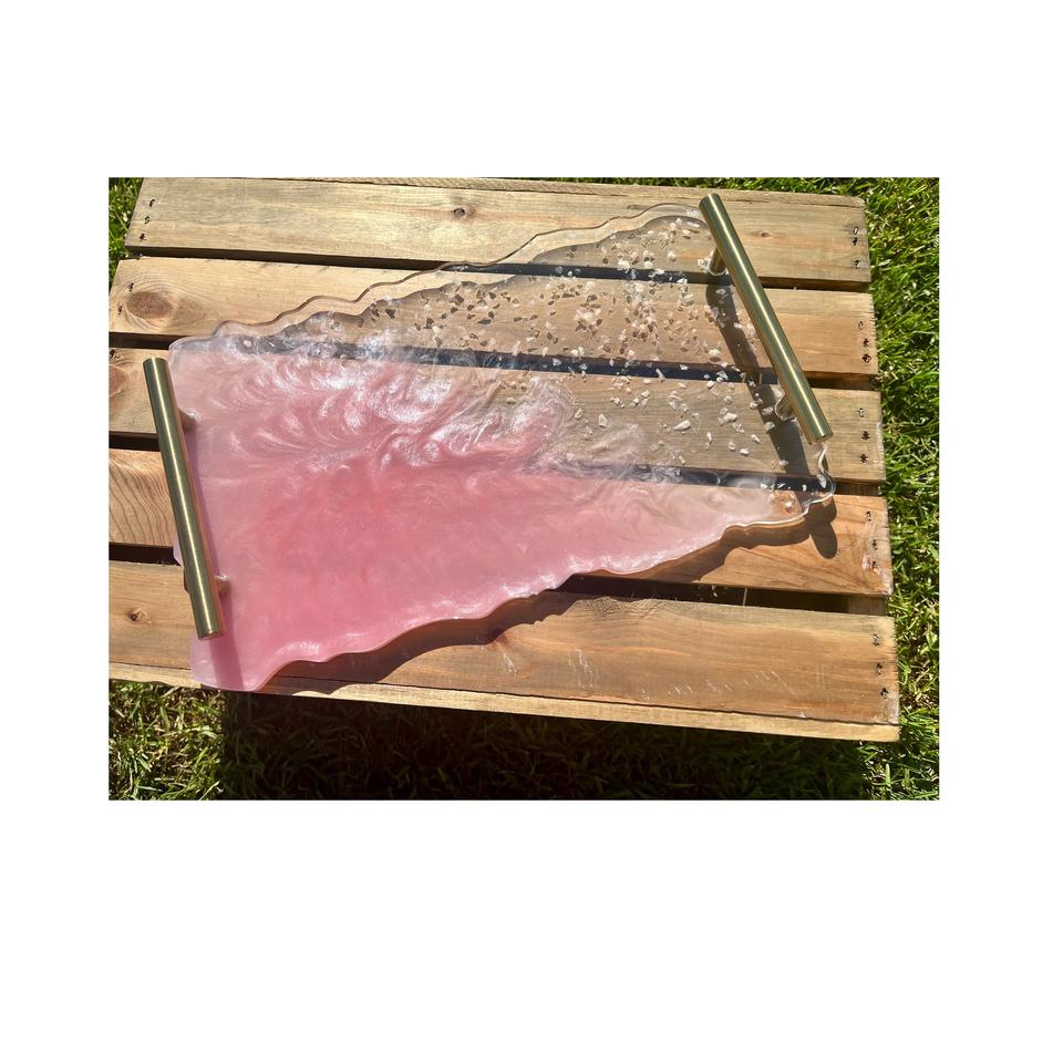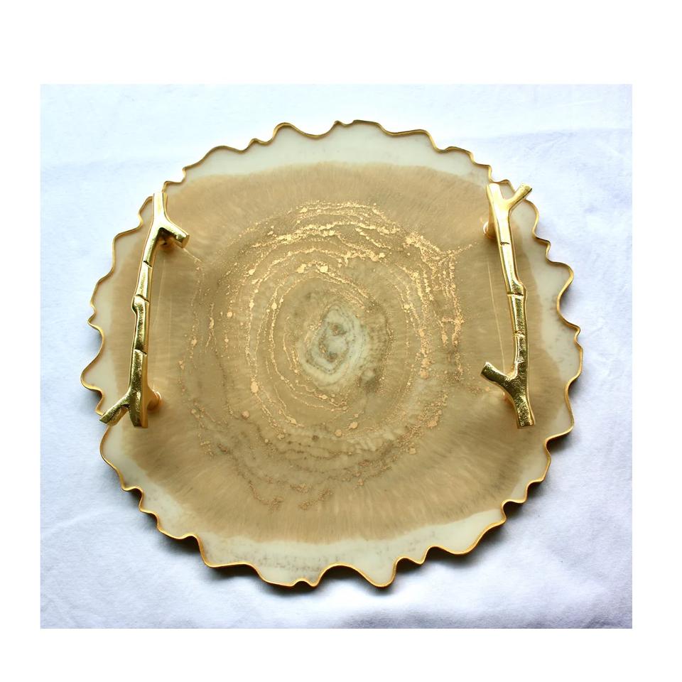 Top Selling Cute Epoxy Resin Tray With Metal Leaf Design Handle Rectangle Shape for Home & Hotel Resin Food Serving Tray