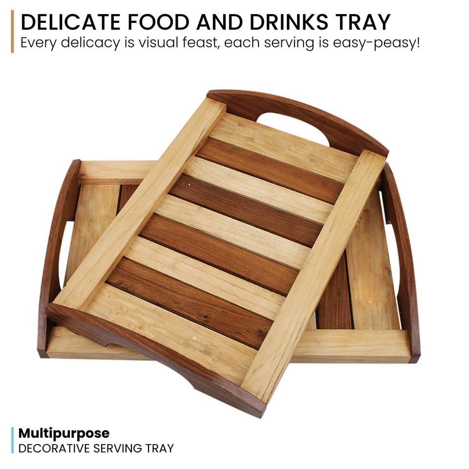 Top Selling Dual Tone Beech Wood Square Wooden Serving Tray Set of 2 Snacks Serving Tray Table Decor Decorative for Sell