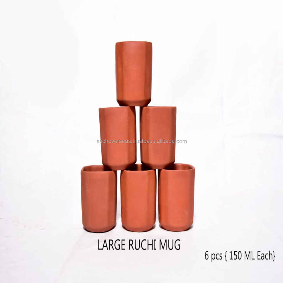 Top Selling Earthen Brown Eco Friendly Natural Clay Terracotta Glasses Set of 6 For Drinking Water Tea Coffee 150 ml