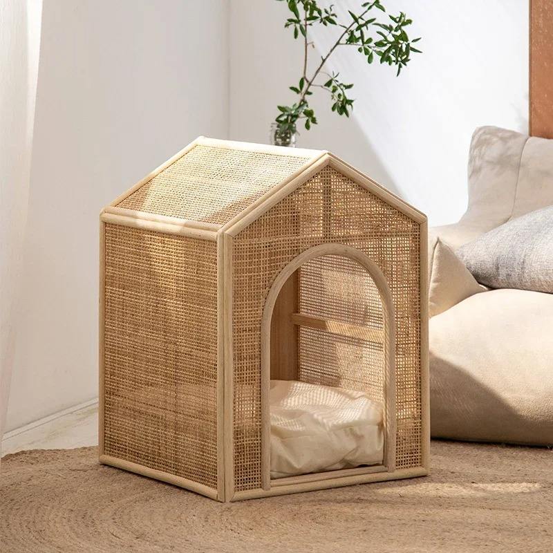 Top Selling Eco Dog Beds Adorable Seagrass Cat House With Mattress Handicraft Natural Rattan Pet Bed