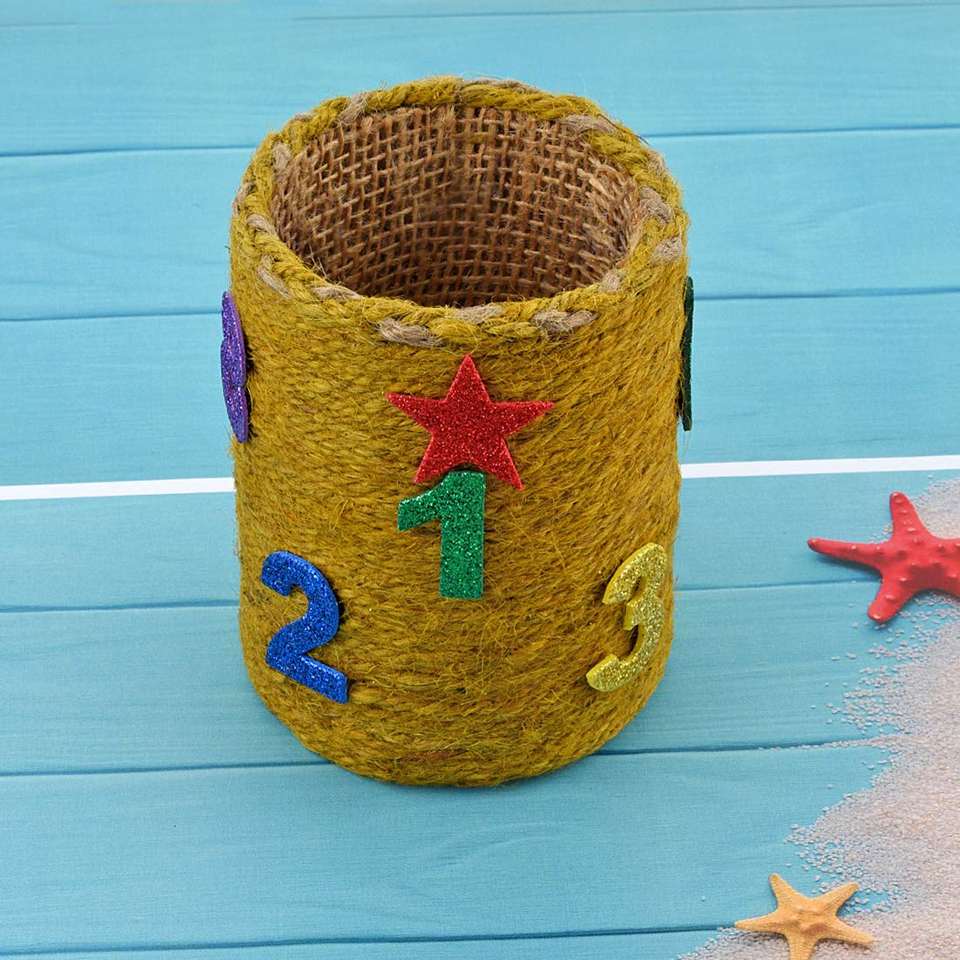 Top Selling Eco-Friendly Jute Woven Flower Vase Desk Organizer Natural Finishing Metal Frame Indoor Decoration for Home Office