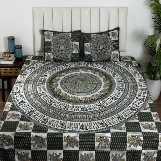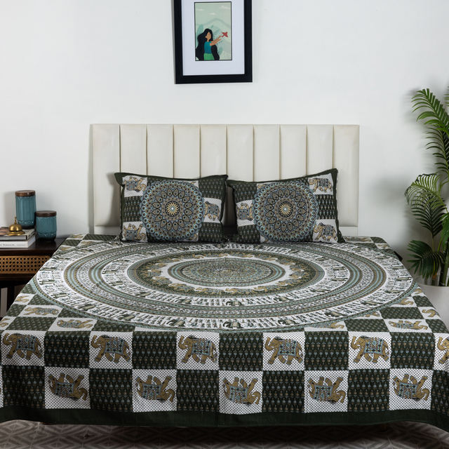 Top Selling Elephant Printed Soft Cotton Eco-Friendly 300tc Double Bed Flat Bedding 2 Pillow Covers Hotel Home Style Wholesale