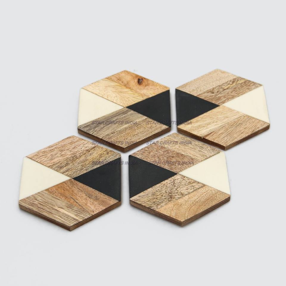 Top Selling Engravable Natural Wooden Monogram Wood Resin Blue Epoxy Round Best Coasters Holder Set with Logo