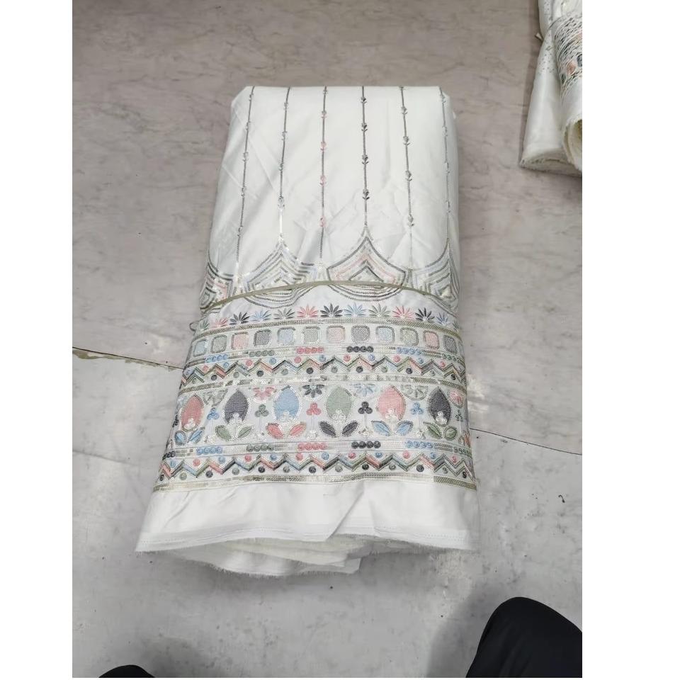 Top Selling Exclusive Malai Satin Embroidered Fabric for Ethnic Wear Evening Dresses and Fashion Collections Available for Sale
