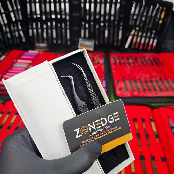 Top Selling Eyelash Extensions Fiber Tip Tweezers Sustainable Steel Shinny Black Powder Coated By Zonedge