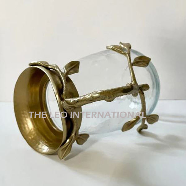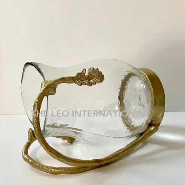 Top Selling Fancy Pitcher Leaf Design Gold Finish Material Aluminium Glass 7X5.5X8 Inch Home Hotel Decorative Kitchenware