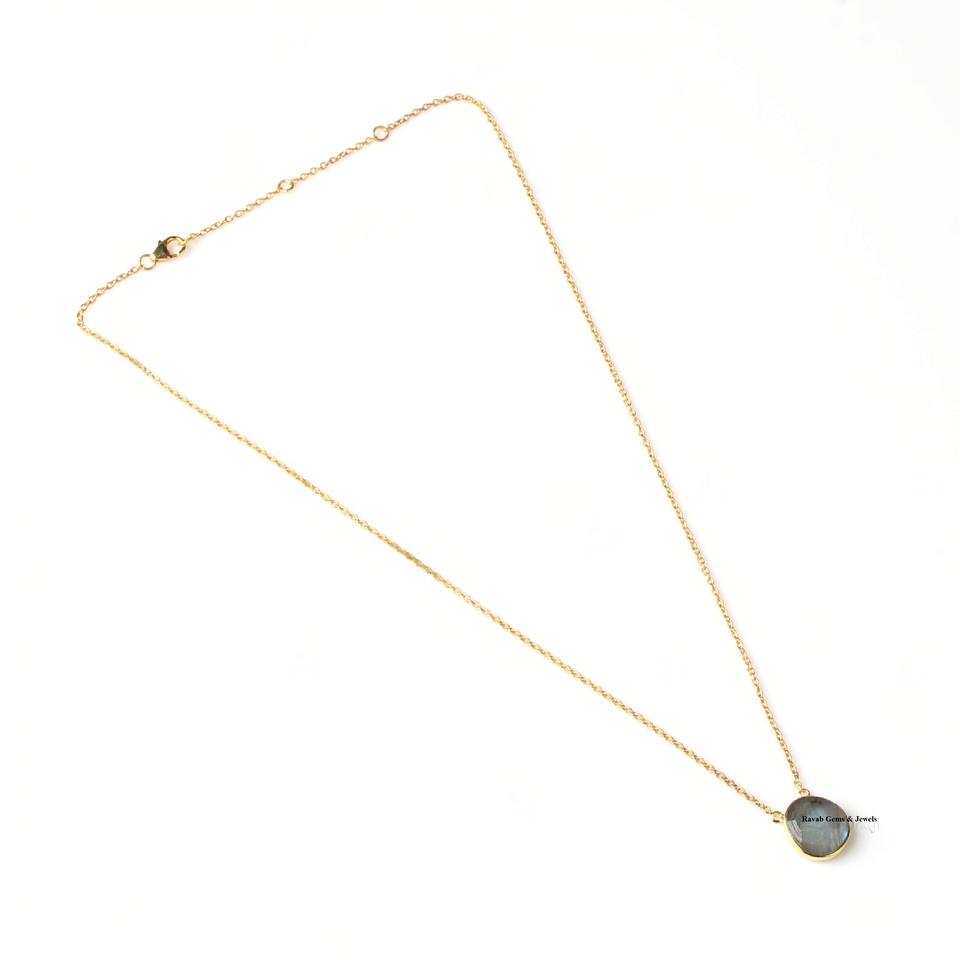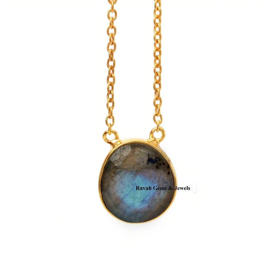 Top Selling Genuine 14x15mm Labradorite Gemstone 18k Gold Plated Sterling Silver Dainty Chain Organic Shape Trendy Women's Gift