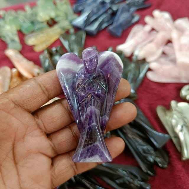 Top Selling Hand Carved Sunstone Angle Figurine Natural Crystal Guardian Angel Statue Reiki Healing Decorative Stone