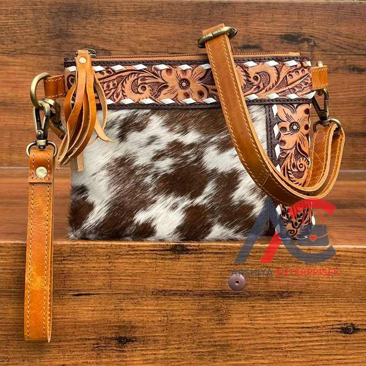 Top Selling Hand Tooled Leather Fashion Ladies Wristlet Handbags Genuine Cowhide Leather Crossbody Shoulder Mini Bags for Women