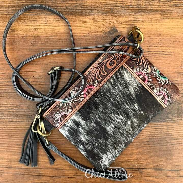 Hand Tooled Leather Cowhide Purse