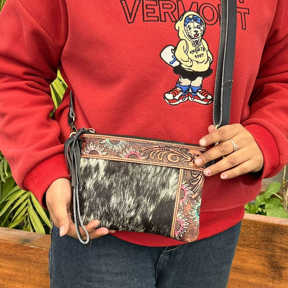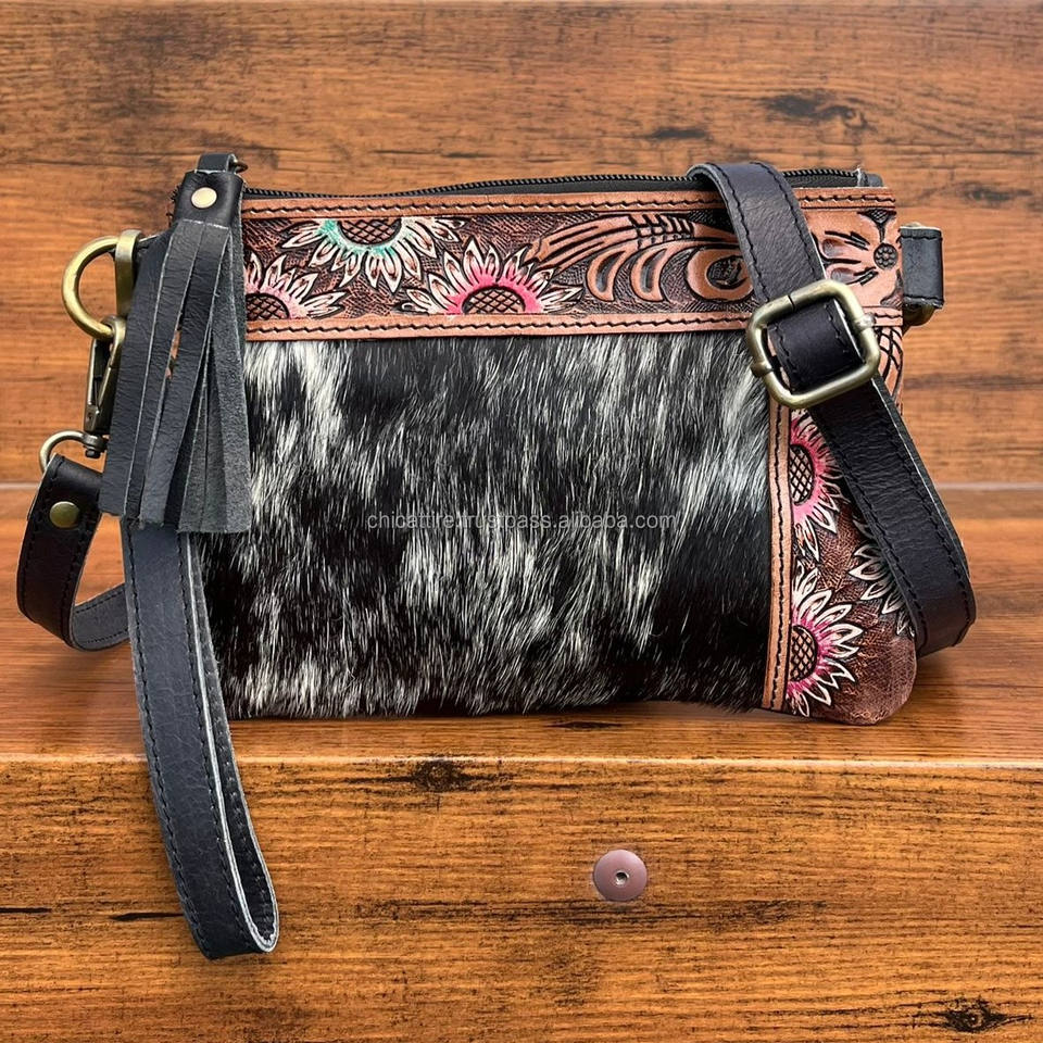 Top Selling Hand Tooled Leather Fashion Ladies Wristlet Handbags Genuine Cowhide Leather Crossbody Shoulder Mini Bags for Women