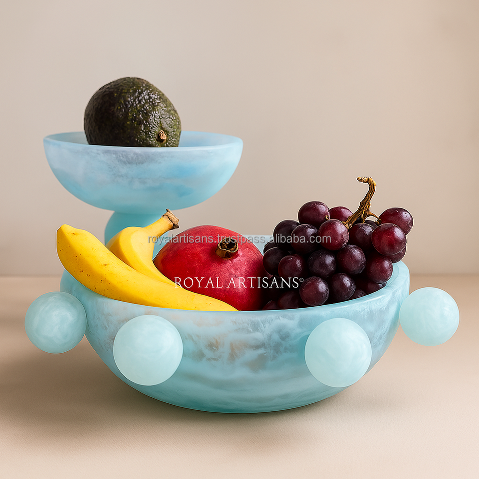 Top Selling Handmade Epoxy Resin Fruit Bowl with Pedestal Base Decorative Centerpiece Serving Bowl for Home Kitchen