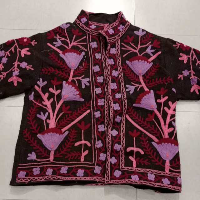 Top Selling Handmade Reversible Knitted Solid Cotton Quilted Jacket Button Closure Quick Dry Boho Embroidered Outerwear
