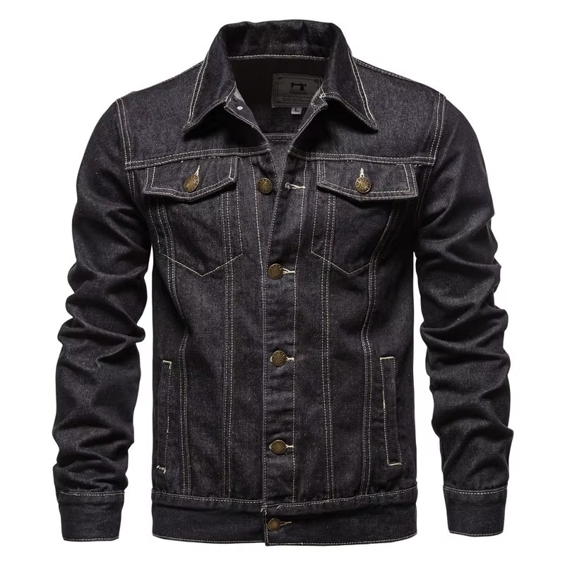 Top Selling High Quality Men Denim Jacket Wholesale Custom Street Wear Autumn Front Genuine Leather Windproof Stand Breathable
