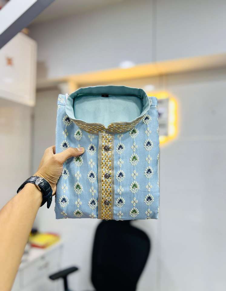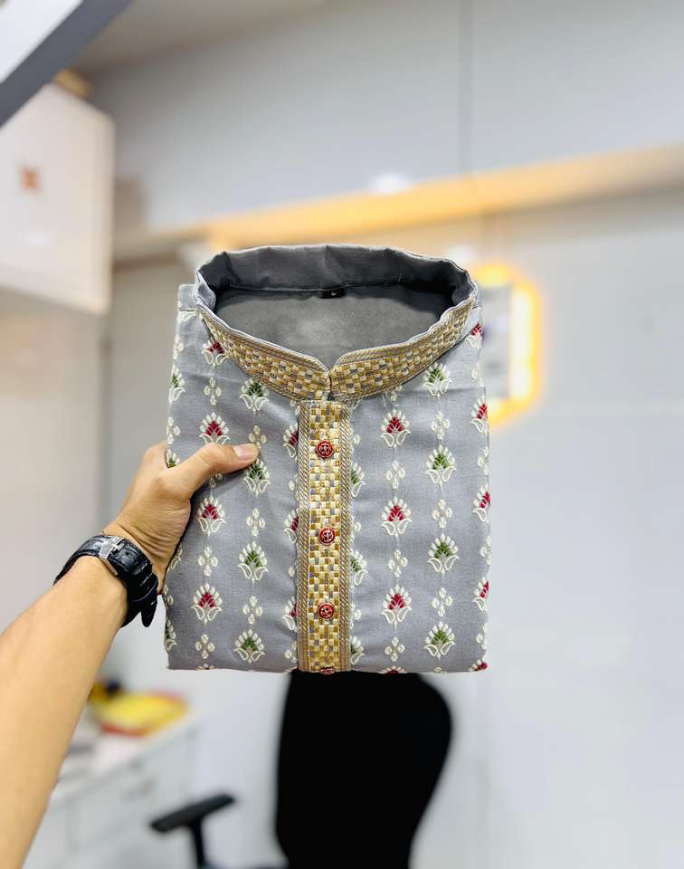 Top Selling Jacquard Silk Kurta Pajama Set Men's Casual Festival Wear Indian Pakistani Clothing Knee Length Fancy Kurta