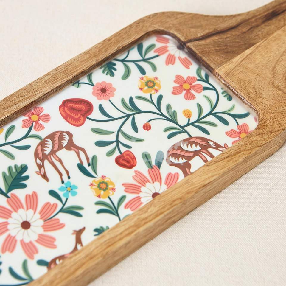 Top Selling Kashmir Trails Wooden Snack Platter with Natural Color and Sticker Handcrafted Elegant Decorative for Hotel and Cafe