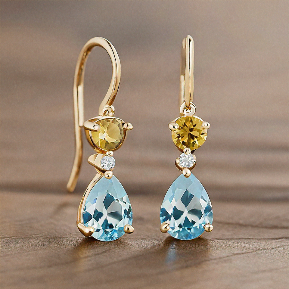 Top Selling Lemon Blue Topaz Gemstones Earrings With 925 Sterling Silver for Womens