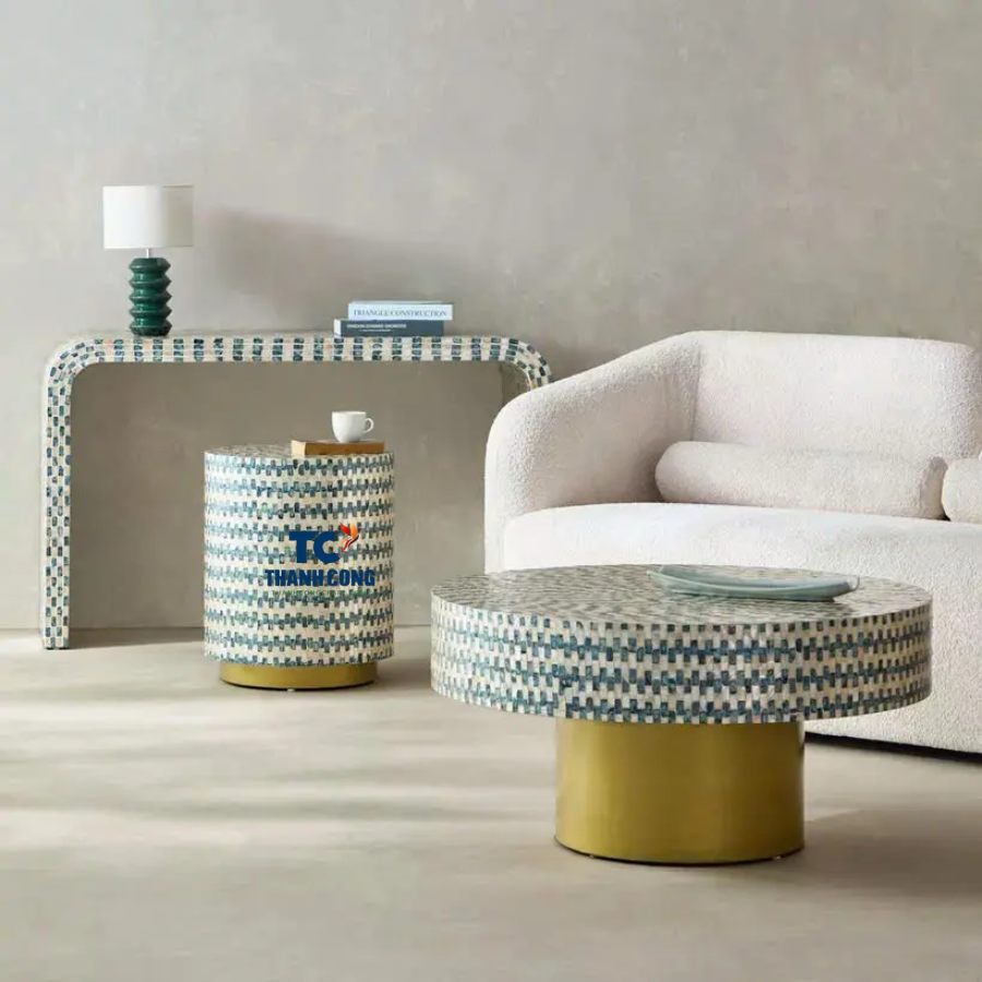 Top Selling MOTHER OF PEARL STOOL Cheap Price MOTHER OF PEARL TABLE Wooden Furniture Manufacturer for Living Room and Hotel