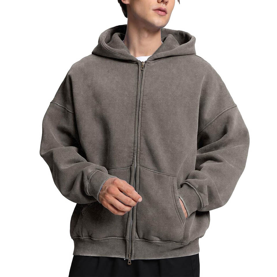 Top Selling Men's Hoodies with New Design Oversized Fit Full Zipper Made in Pakistan Low MOQ Wholesale Acid Wash Hoodies
