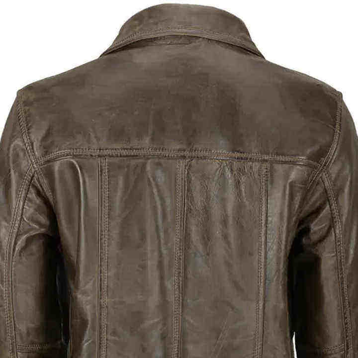 Top Selling Men’s Long Coat Double Breasted Black White Embossed Cowhide Leather Trench Coat Mid Length Winter Overcoat Stylish
