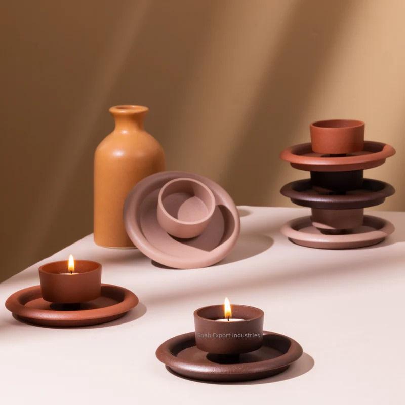 Top Selling Metal Tealight Candle Holder Enamel Color for Home Living Room Decor Tealight Candle Holder With Round Plate