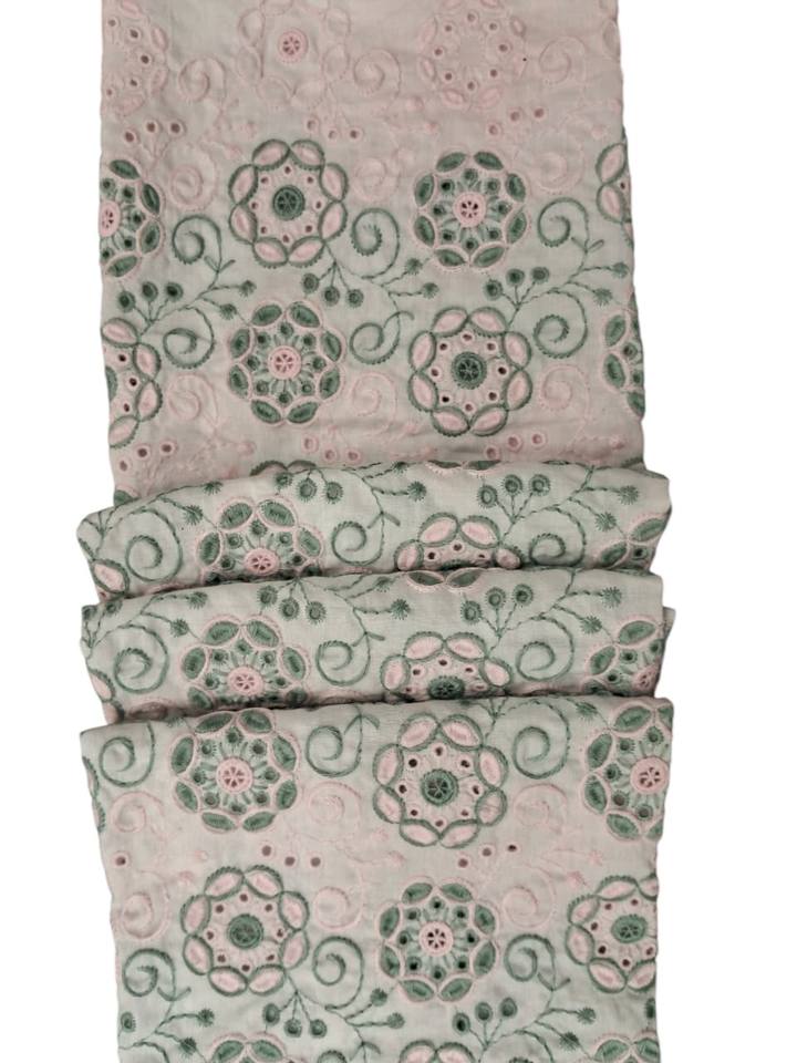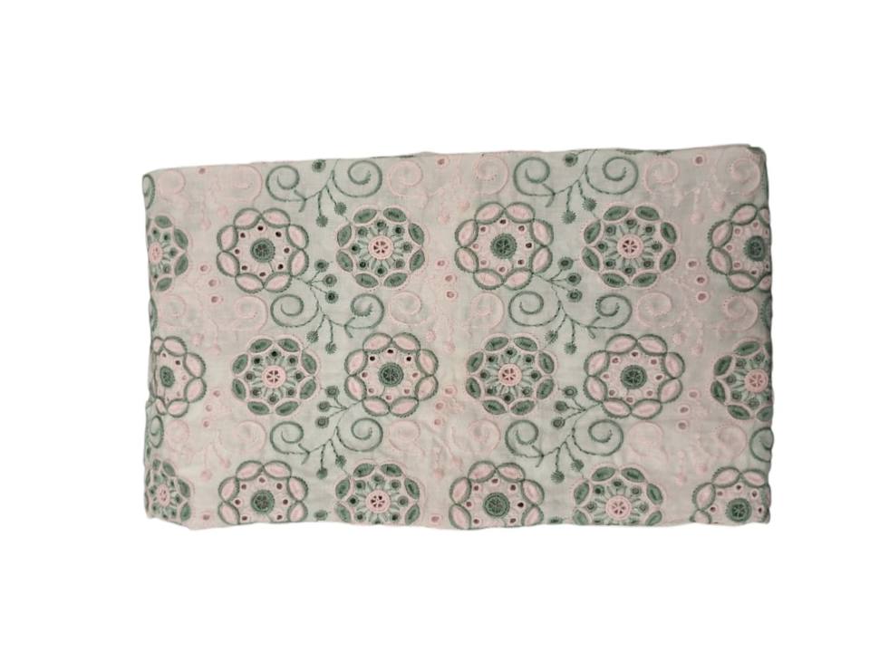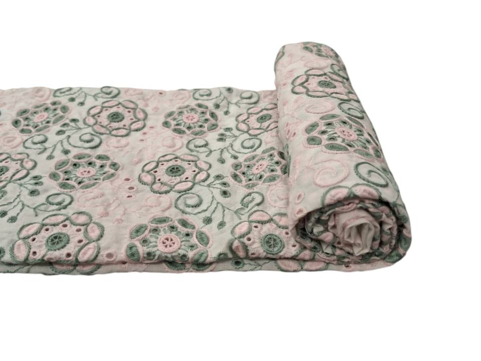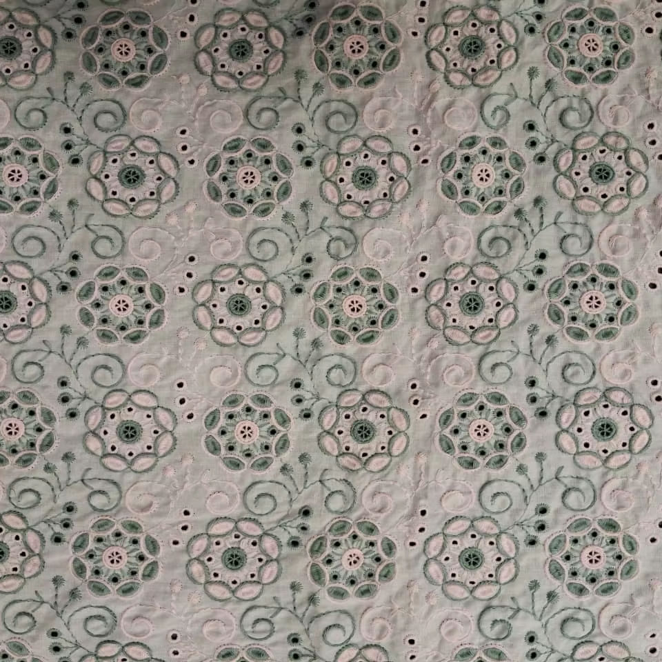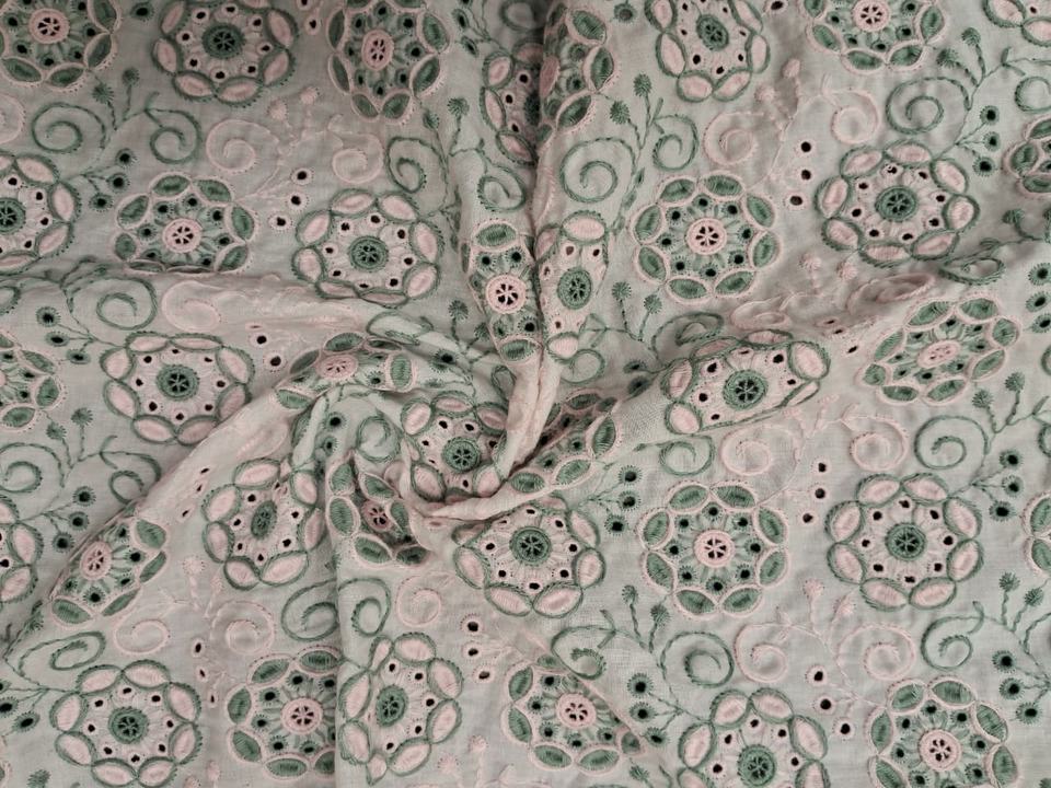 Top Selling Mint Green & Blush Pink Floral Cutwork Embroidered Cotton Fabric Eyelet Medallion Allover Embroidery
