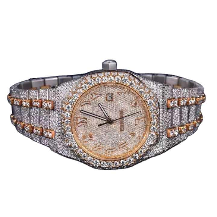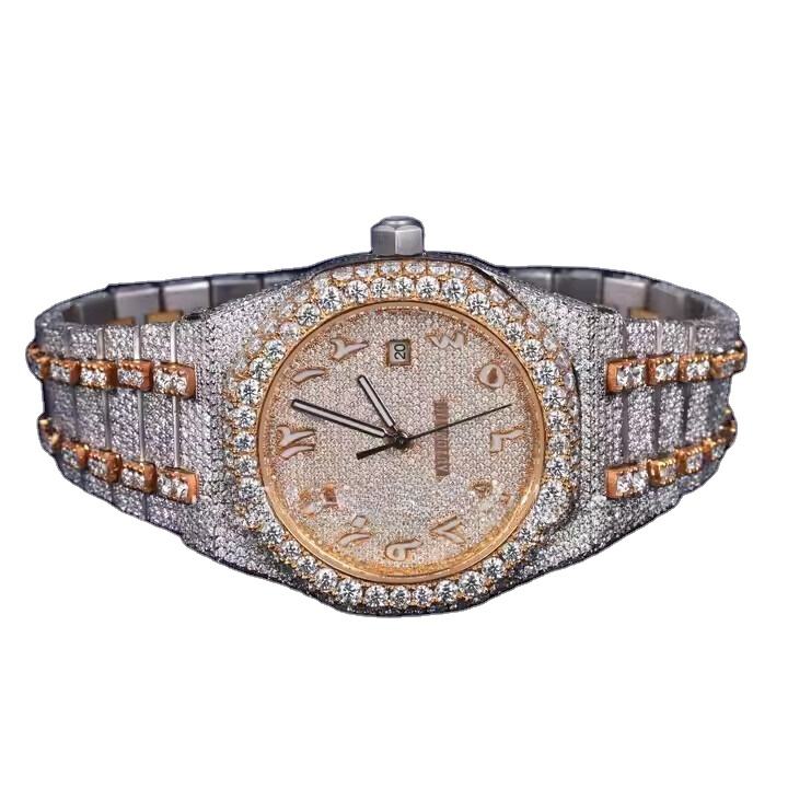 Top Selling Moissanite Diamond Quartz Watch Stainless Steel Band White Tone Luxury Diver Classic Unisex 41MM