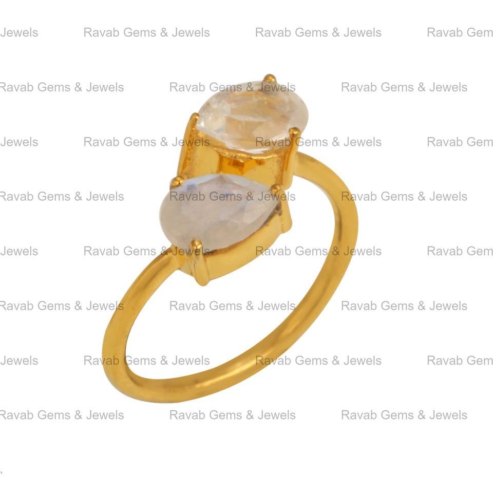 Product Name:Rainbow Moonstone Sterling Silver Gold Plated Adjustable Ring