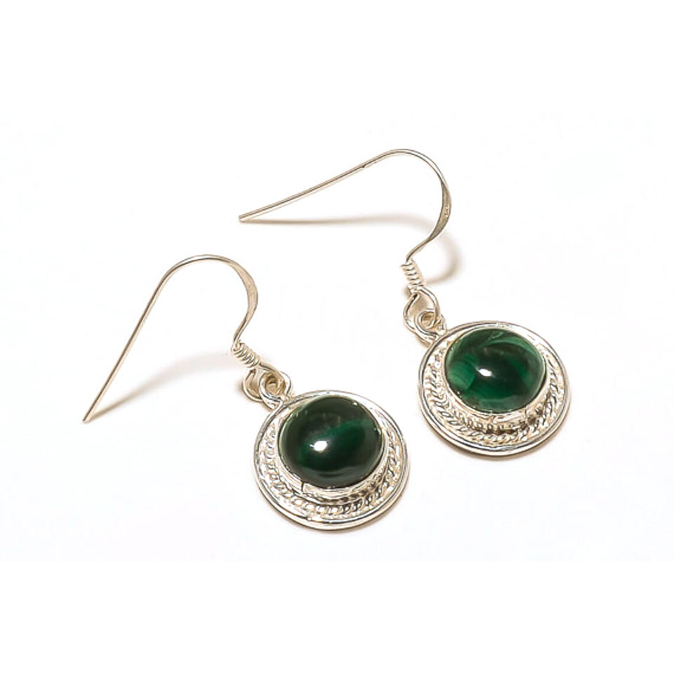Top Selling 925 Sterling Silver 9mm Earring Handmade Vintage Bohemian Dangle Featuring Natural Malachite Gemstone for Women