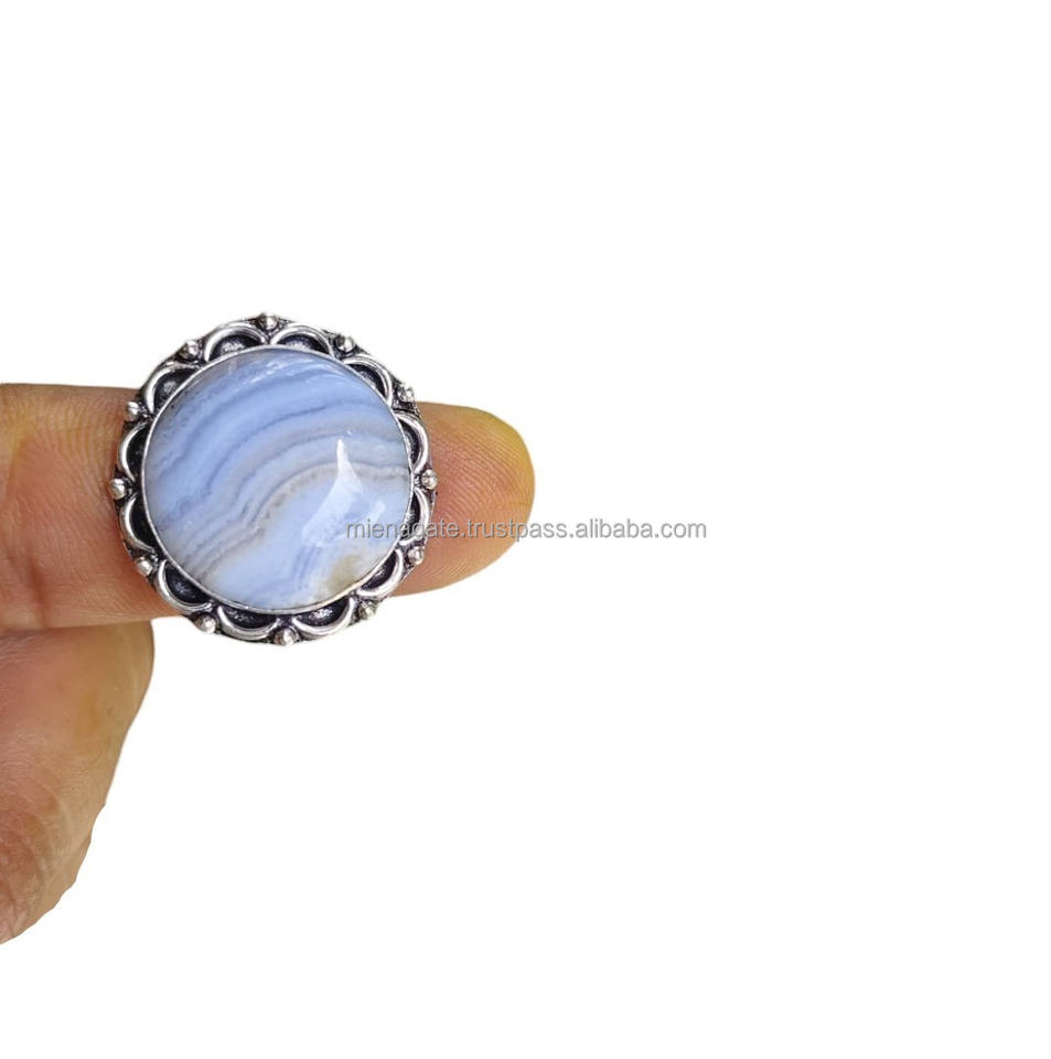Top Selling New Arrival Natural Blue Lace Agate Original Gemstone Ring Jewelry Men Women Premium Quality Ring in Bulk Wholesale