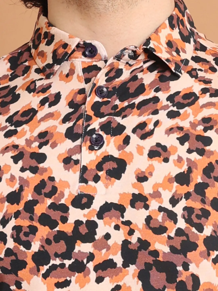 Top Selling Premium Men's Half Sleeve Versatile Casual Wear Comfortable Stretchable for Polo Neck 100% Peach Digital Printed