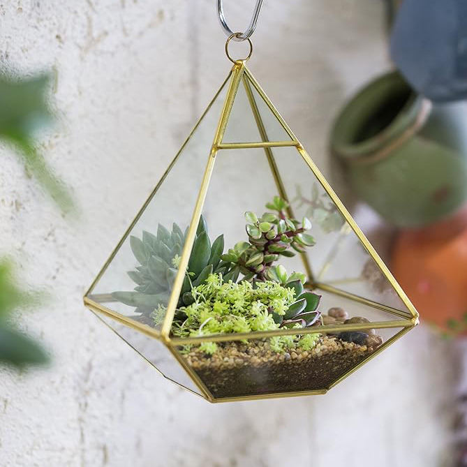 Top Selling Premium Quality Decoration Home Office Restaurants Hanging Triangle Clear Glass Garden Moss Geometric Terrarium Deco